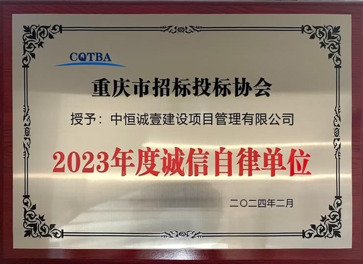 重庆市招投标协会于近日公布了2023年度诚信自律单位名单,我司严格坚守诚信建设、守信践诺,依法开展招投投标活动,荣获“2023年度诚信